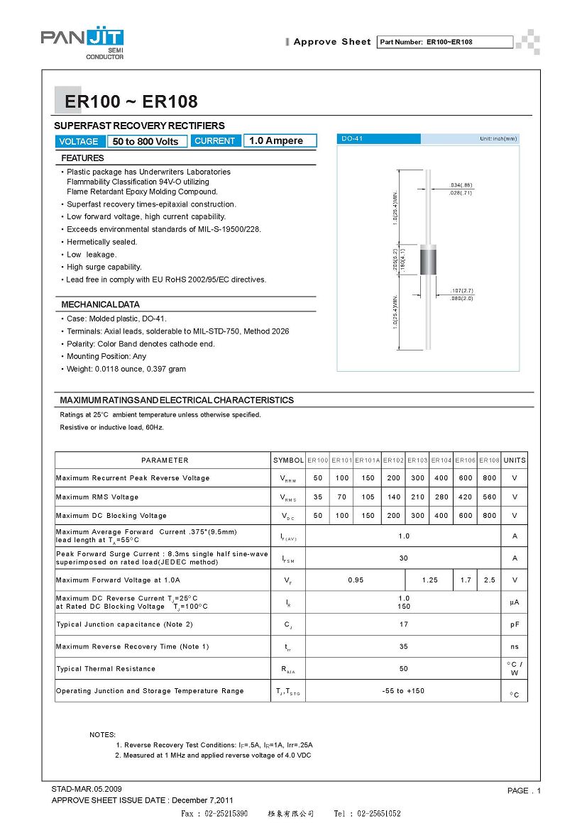ER100 ~ ER108 DO-41 強茂 - PANJIT