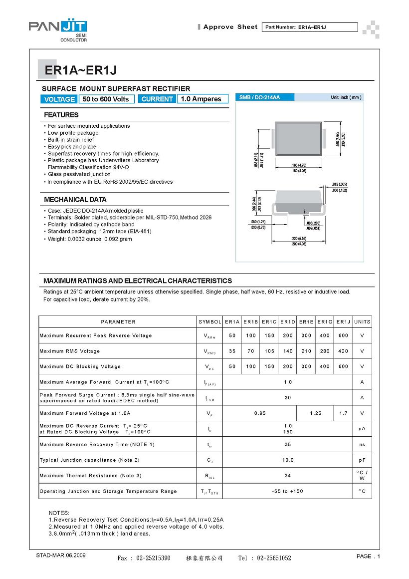 ER1A ~ ER1J SMB / DO-214AA 1A / 50V ~ 600V
