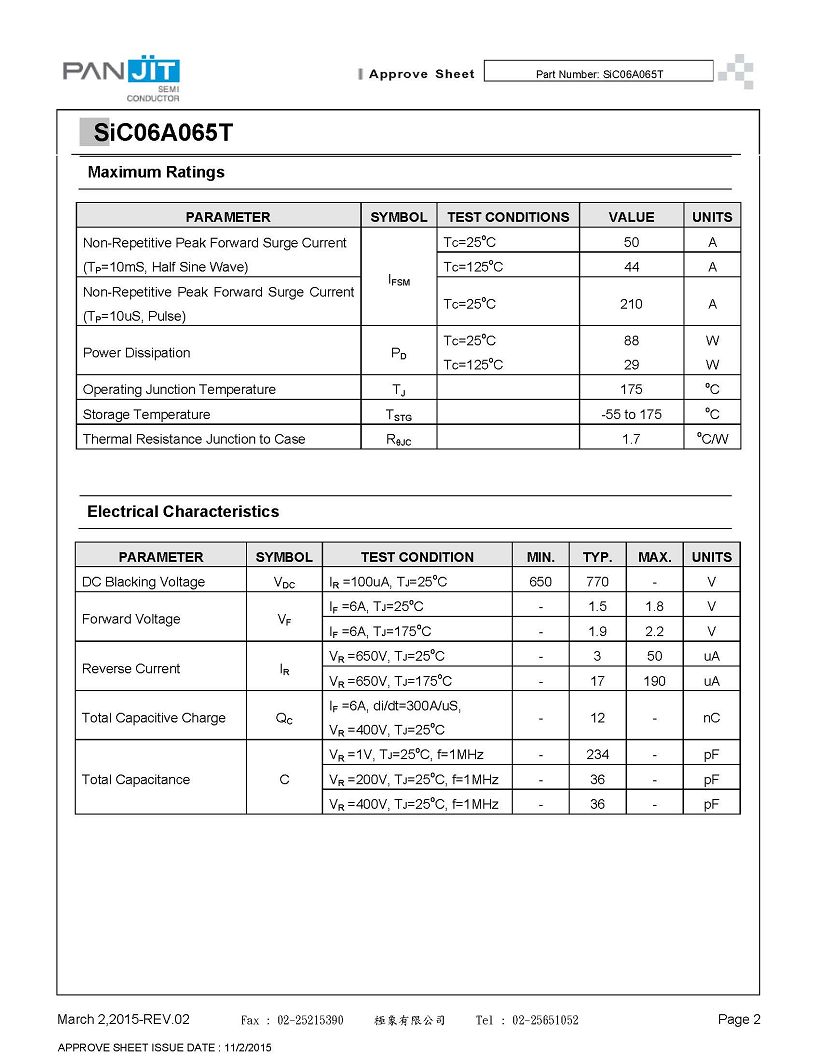 PANJIT SiC06A065T TO-220AC 6A / 650V