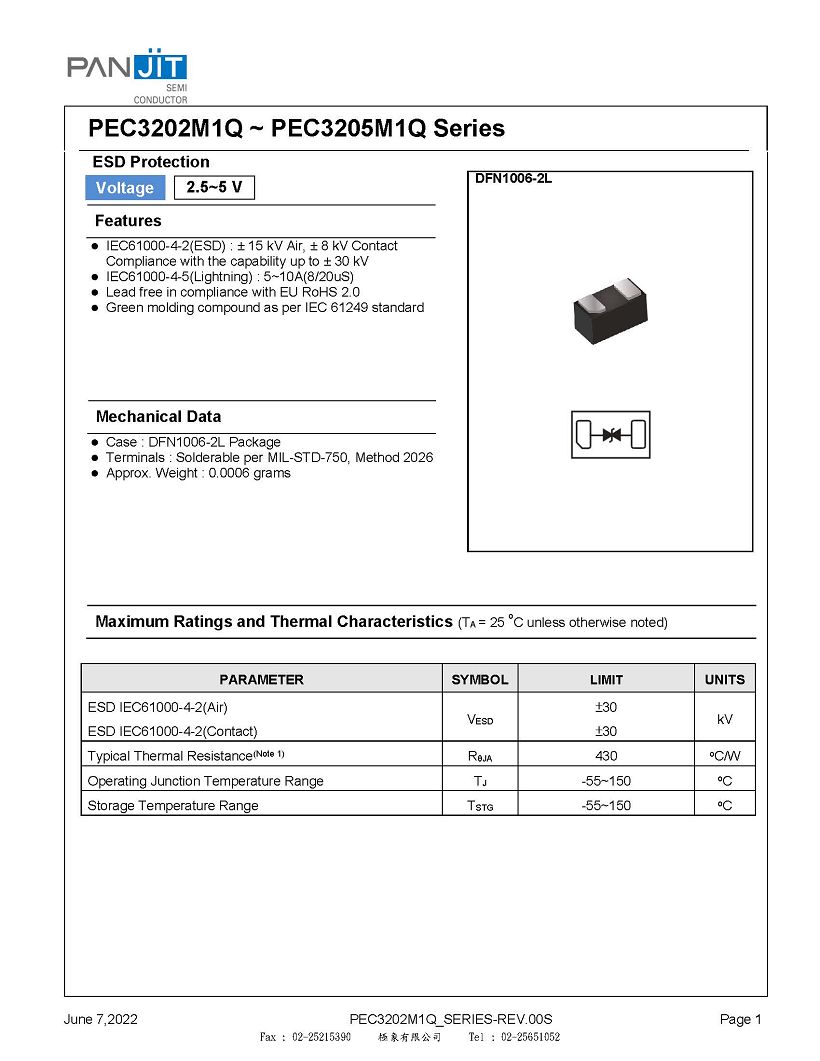 PANJIT ESD Protection Voltage 2.5V ~ 5V