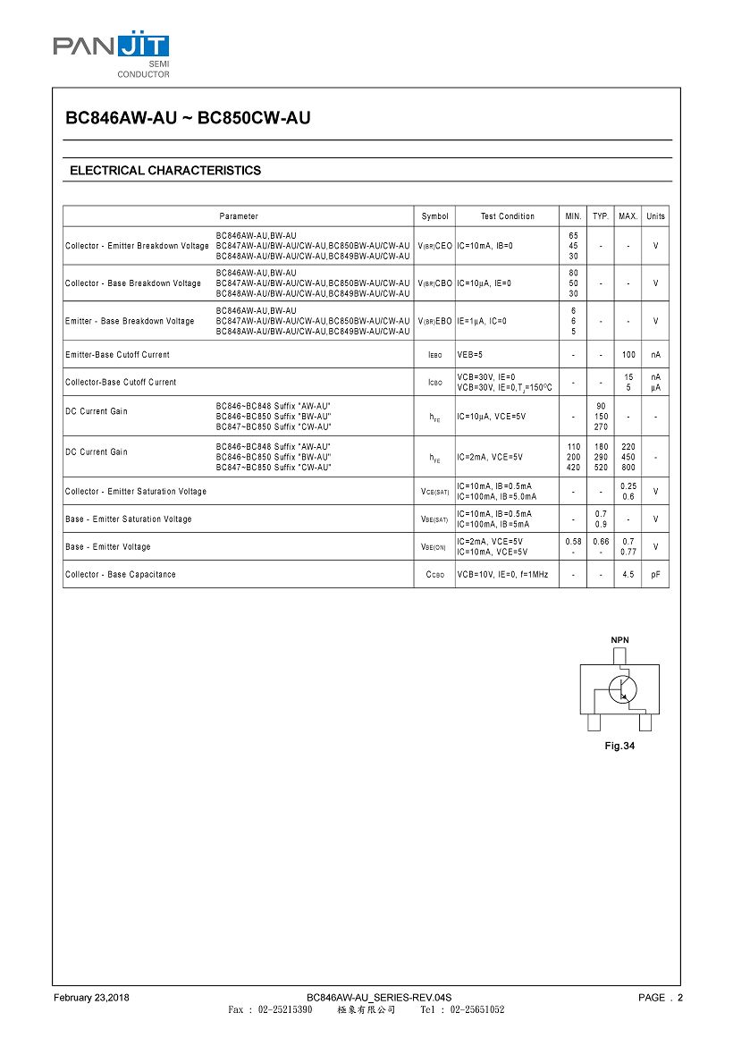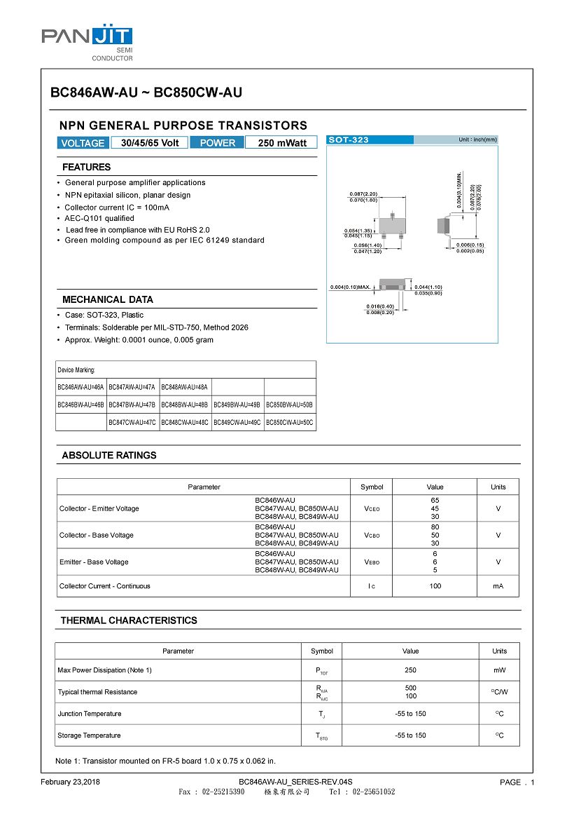 PANJIT BC846W-AU BC847W-AU BC850W-AU BC848W-AU BC849W-AU :(PDF)