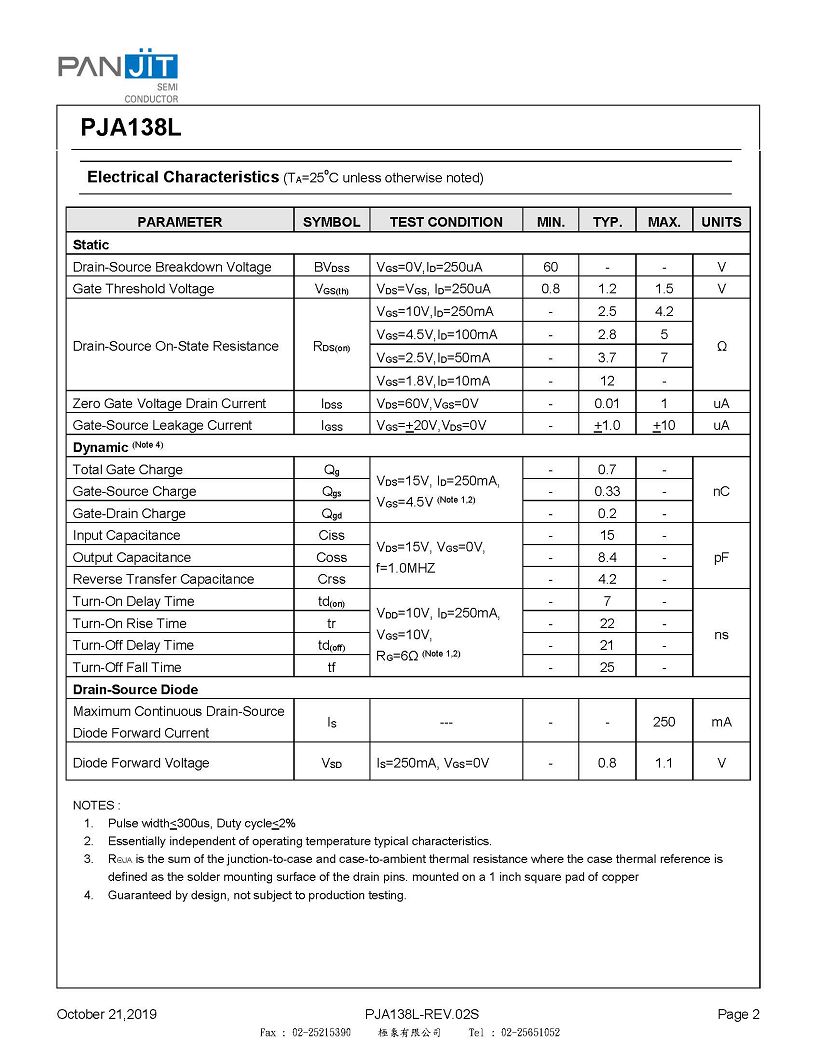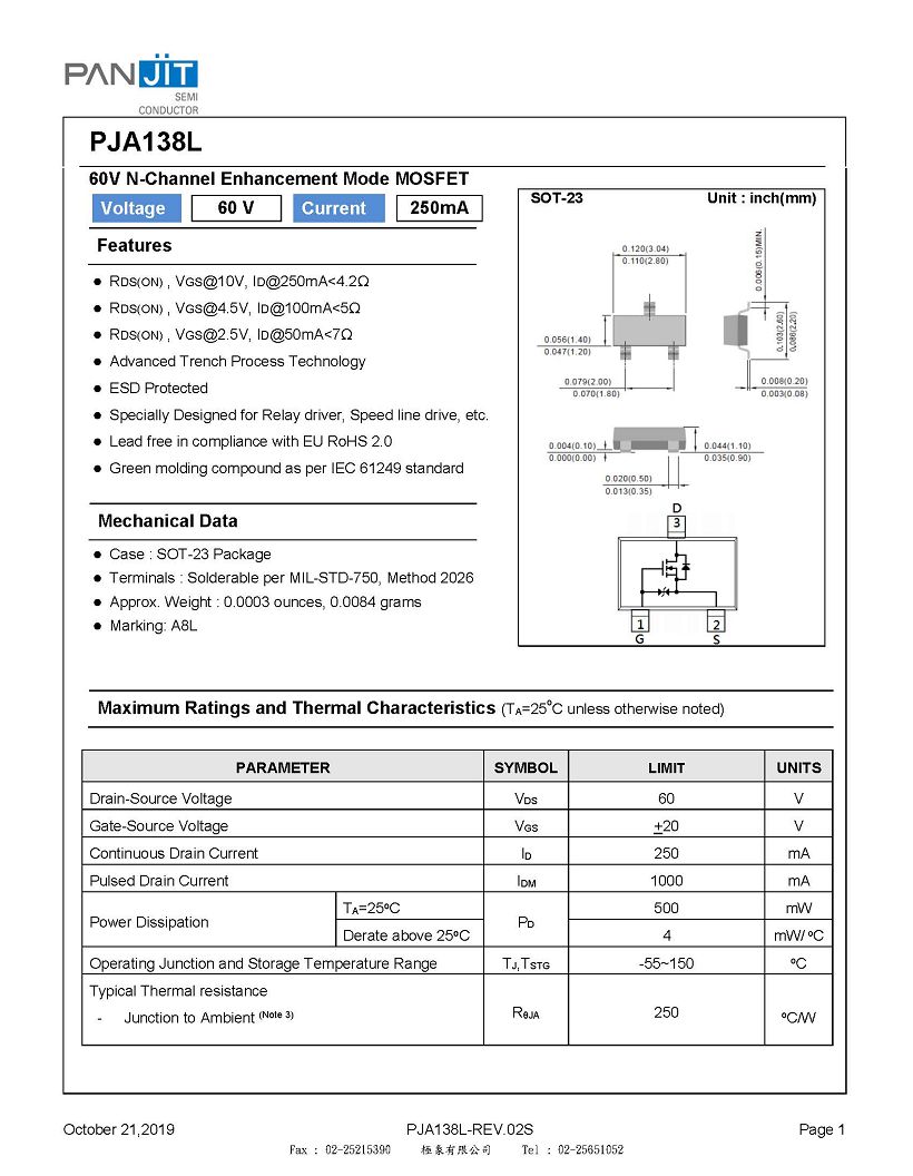 PANJIT PJA138L SOT-23 N-MOS 30V/ 250mA
